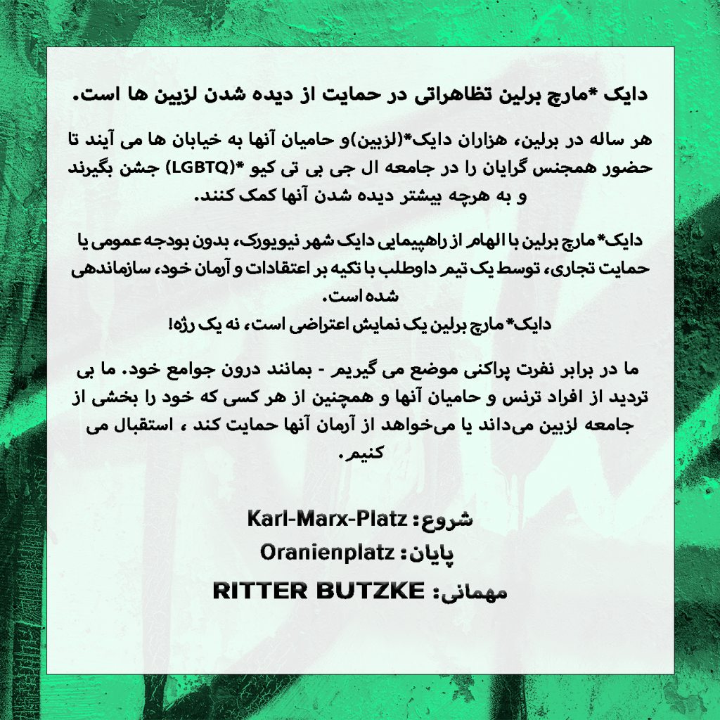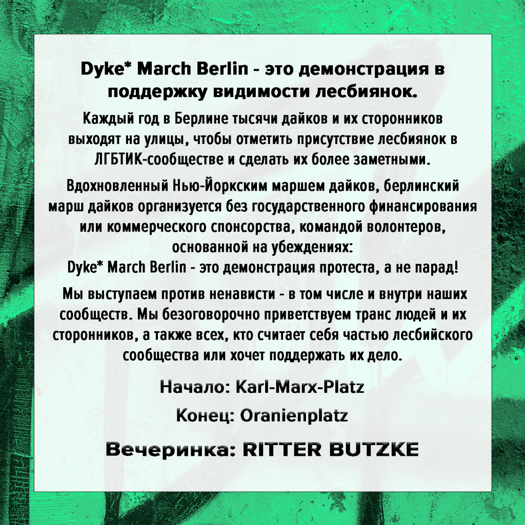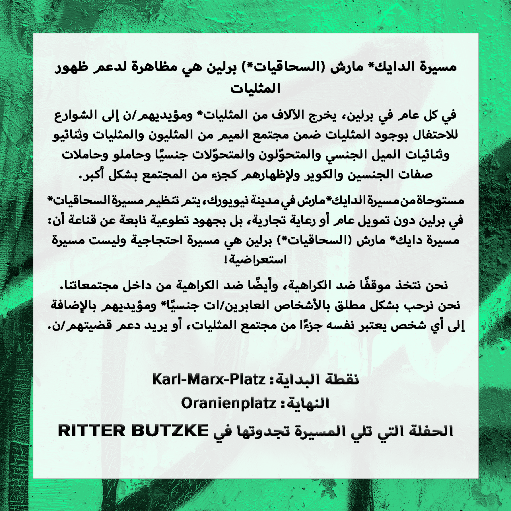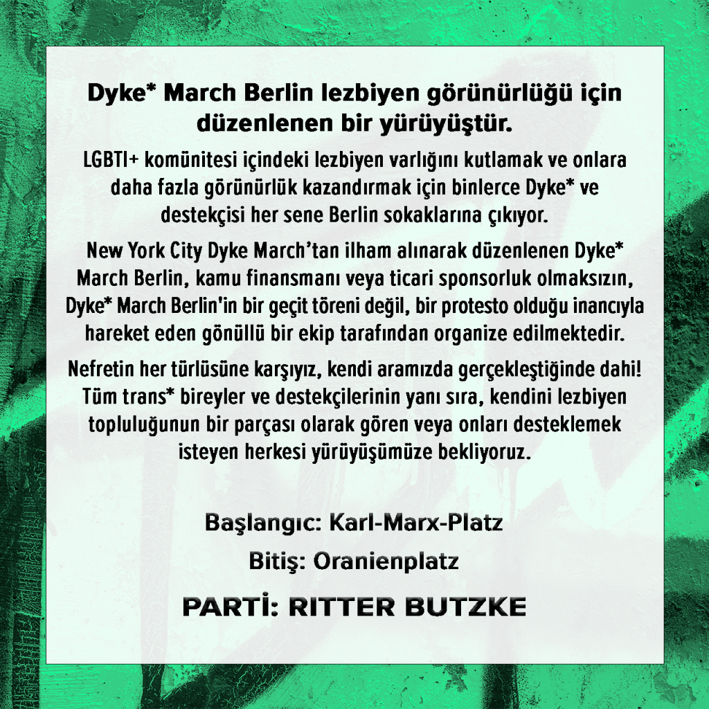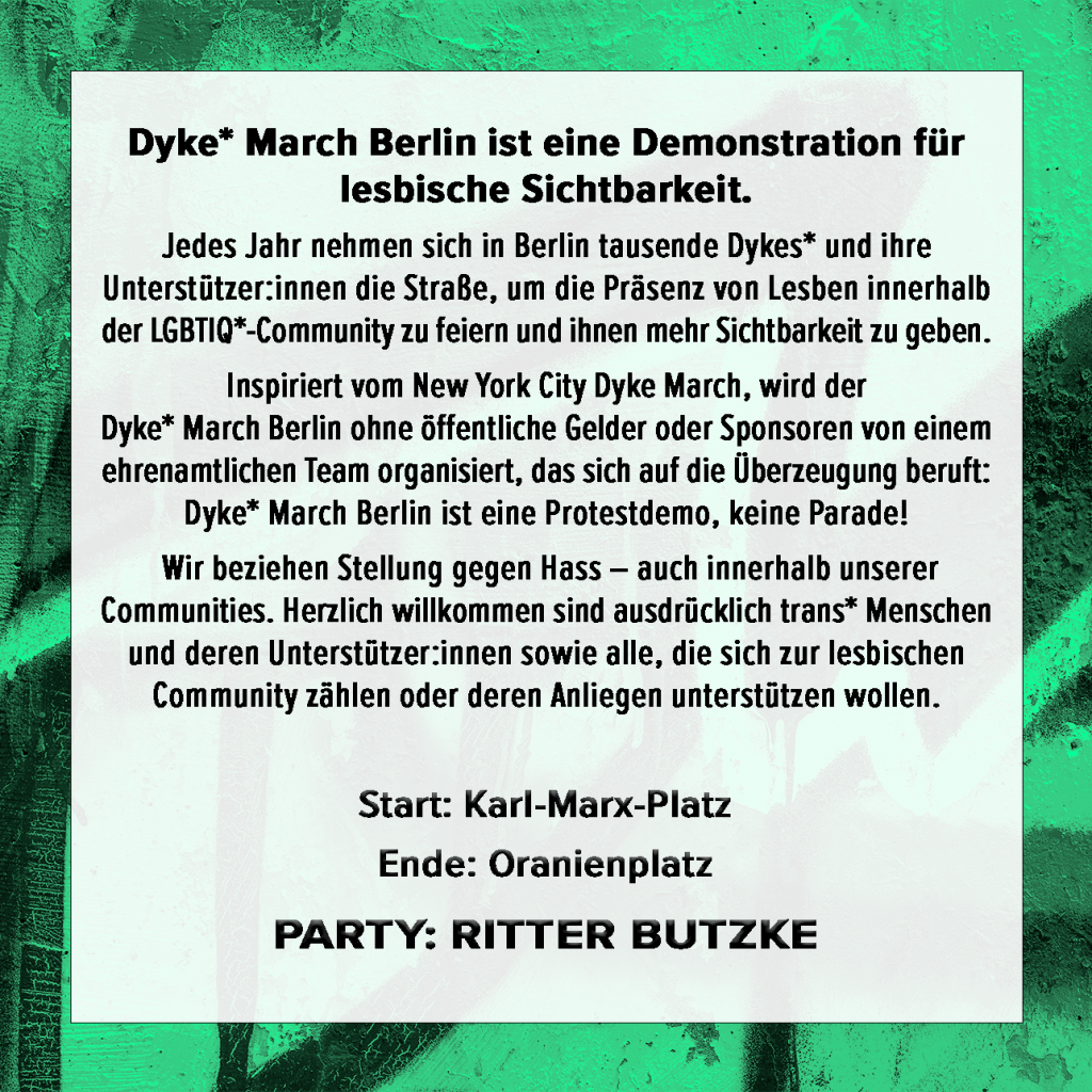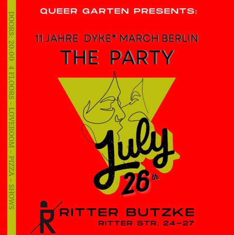 Alle Ordner*innen bekommen freien Eintritt für die Dyke* March Afterparty im Ritter Butzke ☾⋆⁺₊🎧✧