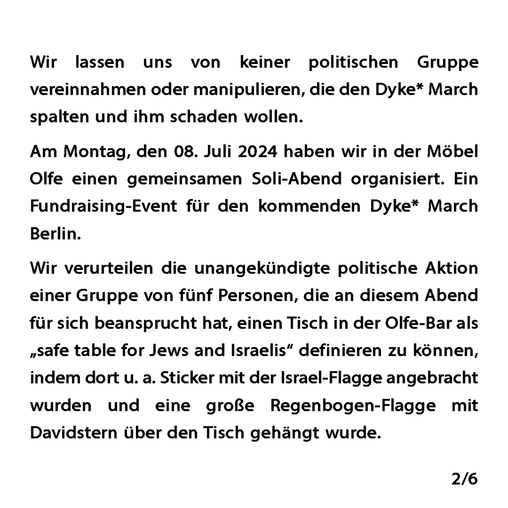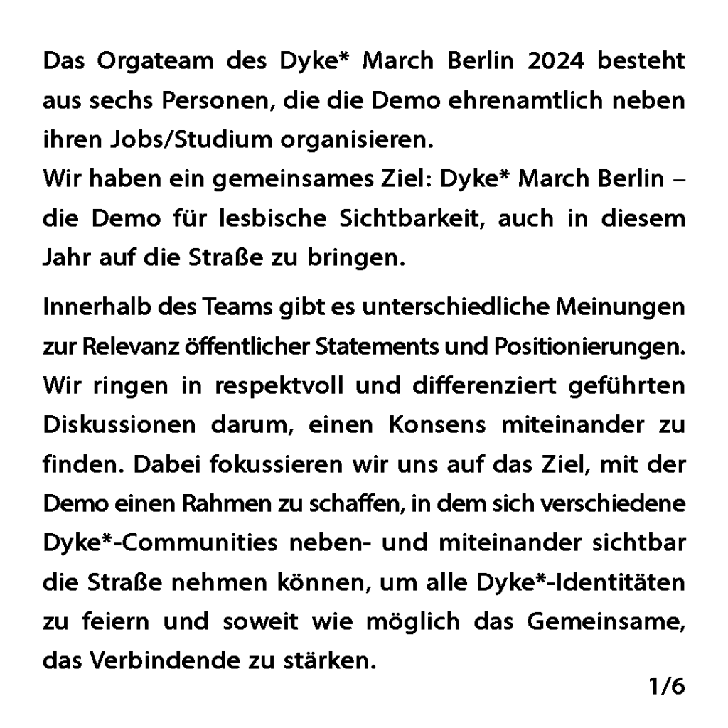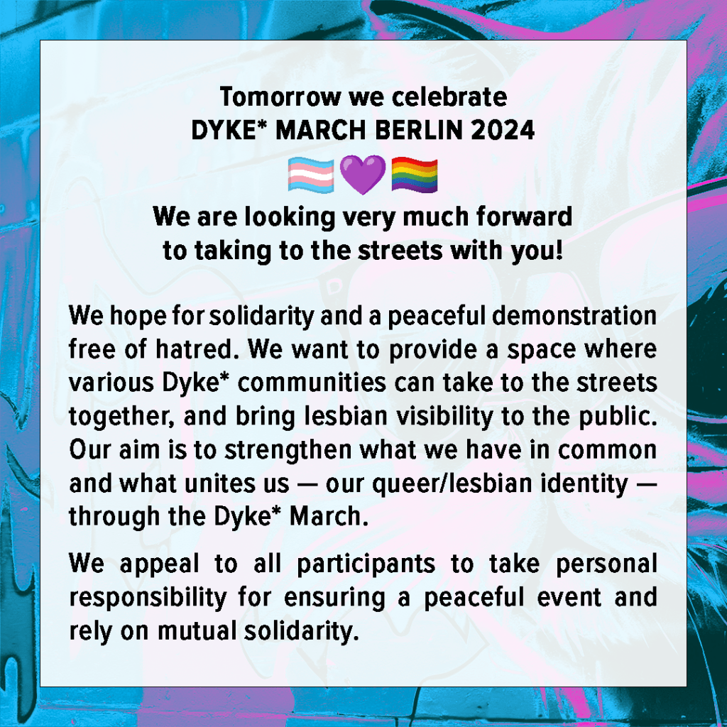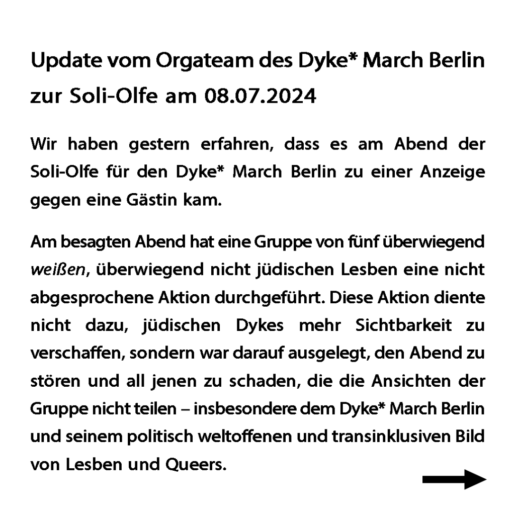 Stellungnahme des Orgateams zur Soli‐Olfe am 08.07 und zum Dyke* March Berlin 2024