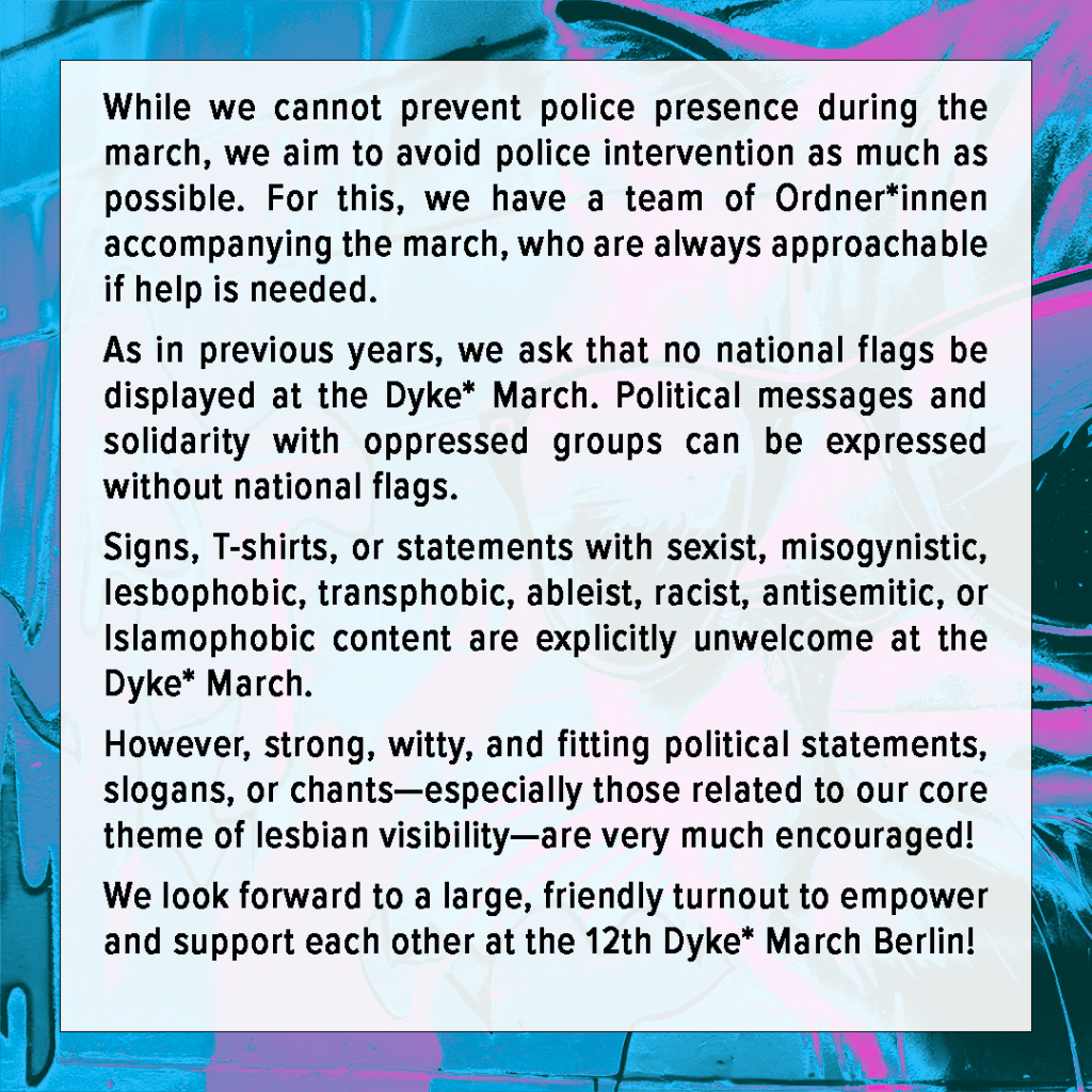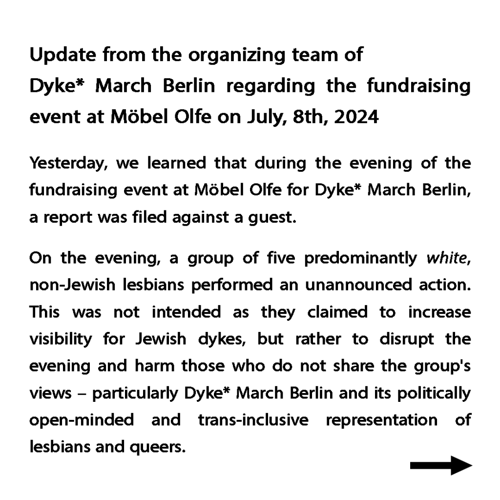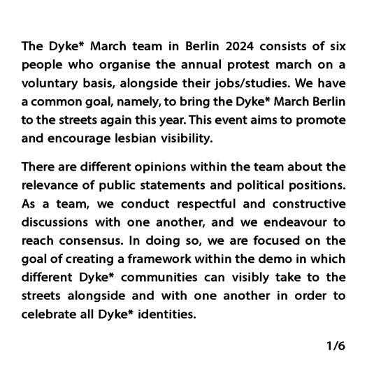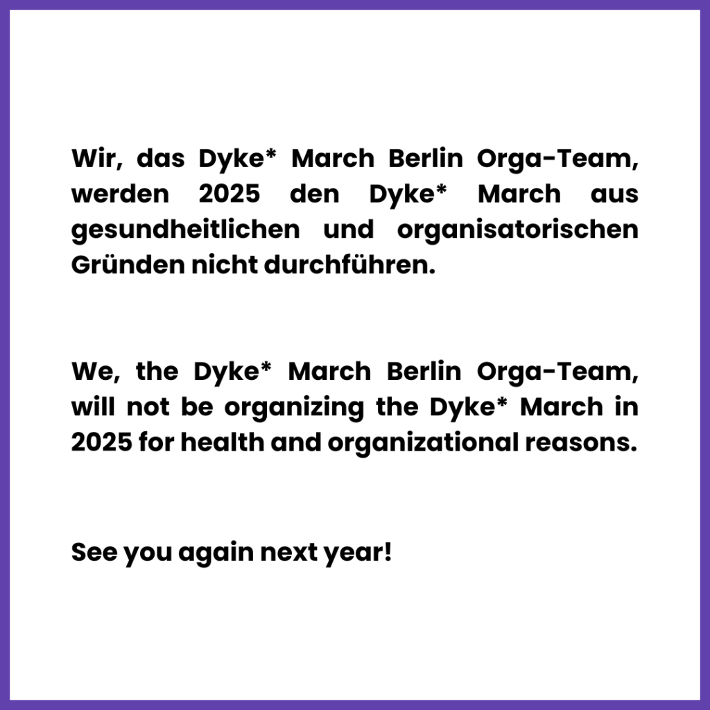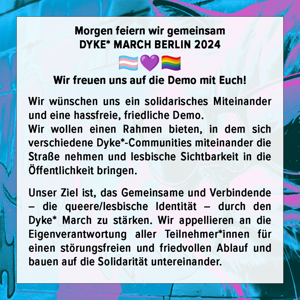 Stellungnahme des Orgateams zur Soli‐Olfe am 08.07 und zum Dyke* March Berlin 2024