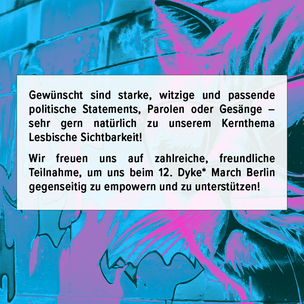 Haltet die Demo in Bewegung und unterstützt und gestaltet den Dyke* March mit.